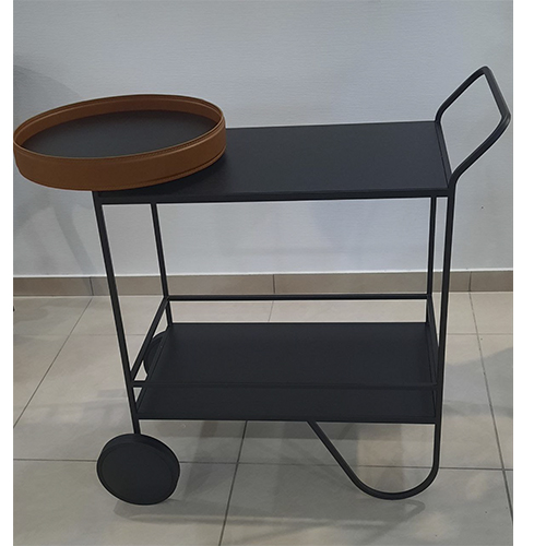 Сервировочные столики очень удобны, если необходимо организовать семейное или дружеское застолье, но не перегрузить приборами основной стол. Итальянские дизайнеры компании Calligaris создали столик GIRO - не только очень функциональный, но и стильный предмет интерьера. Модель изготовлена из металла, оснащена двумя деревянными полками. Для удобства съемную кожаную столешницу можно использовать как поднос. Вместо традиционных ножек столиц опирается на металлическую тонкую раму и достаточно крупные колеса, что придает столику налет винтажного стиля. С помощью такой модели можно добавить нотки атмосферы 50-х годов в интерьер.
