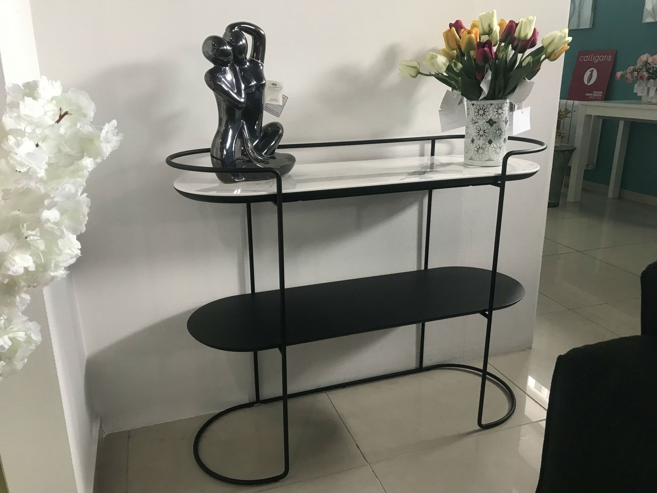 Консоль Atollo может выступать в качестве удобного, стильного и универсального столика. Верхняя выполнена из керамики, а нижняя часть выполнена из дерева. Консоль сочетает в себе элегантность, современные формы. Металлические детали изготовлены из черного никеля, имеют черную матовую поверхность. Модель отлично подойдет для оформления небольшого малогабаритного помещения и безусловно станет украшением интерьера.