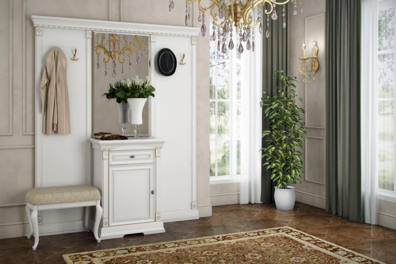 Комплектация: стеновая панель L42 х 2 х H193 см – 2 шт; полка L38 х 18 х 3 см – 2 шт., вешалка L10 x H13 см – 4 шт; тумба – L68 x 40 x H94 см.